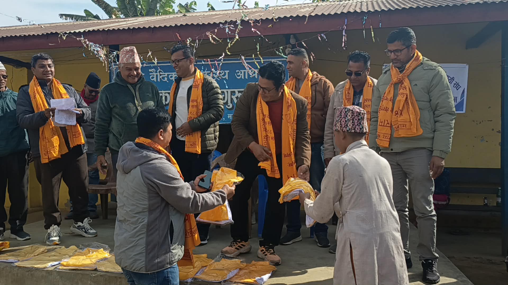 कपडा तथा तयारी पोशाक व्यवसाय सङ्घले हेटौंडा उपमहानगरपालिका–१८ स्थित वैदिक सांस्कृतिक गुरुकुलम्मा अध्ययनरत संस्कृत विद्यार्थी (बटुक) तथा शिक्षकलाई न्यानो कपडा वितरण गरेको छ ।